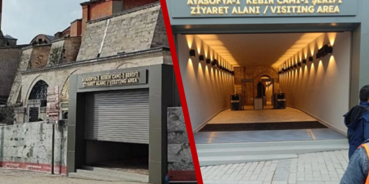 Camiye dönüştürülen Ayasofya’da ibadet ve turistik amaçlı ziyaretleri birbirinden ayırma çalışmaları kapsamında yapılan yeni kapı tepki çekti.