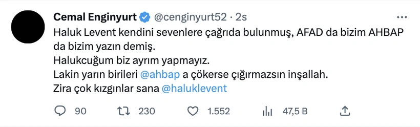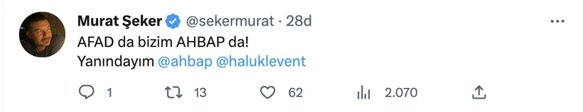 Etiketler: AFADAhbap DerneğiHaluk LeventOğuzhan UğurSürmanşet