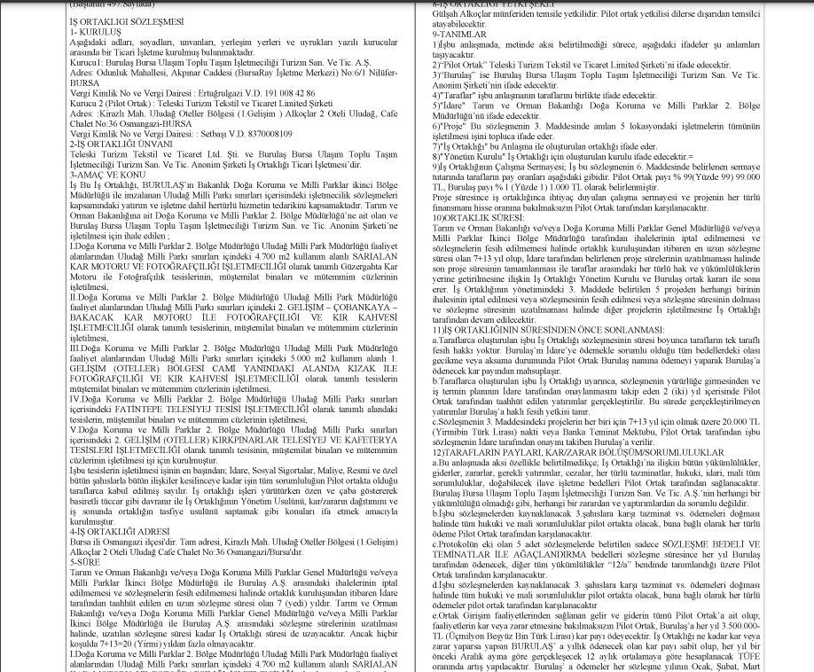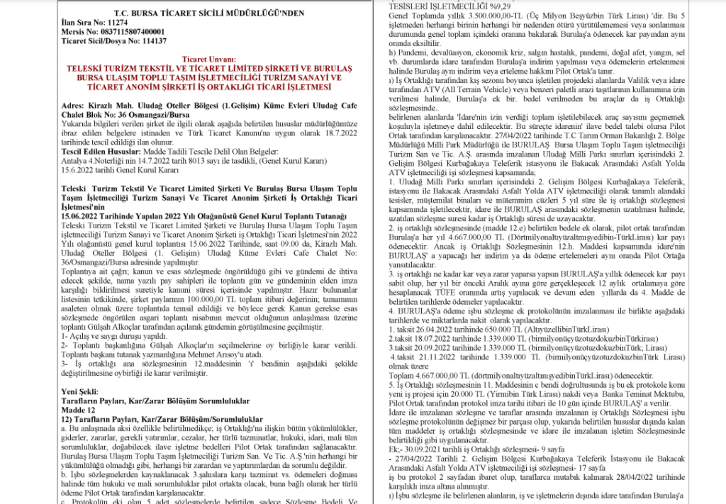 Amma velakin gelin görün ki BURULAŞ ile “Ortaklık” kurduğu bu adı sanı duyulmamış Teleski Turizm Tekstil Ve Ticaret Ltd. Şti. öyle bir ortaklık yapıyor ki evlere şenlik zira bu ortaklıkta %99 hisse bu güzide şirketimiz Teleski Turizm Tekstil Ve Ticaret Ltd. Şti’ye %1 hisse ise Bursa Büyükşehir Belediyesi yan kuruluşu