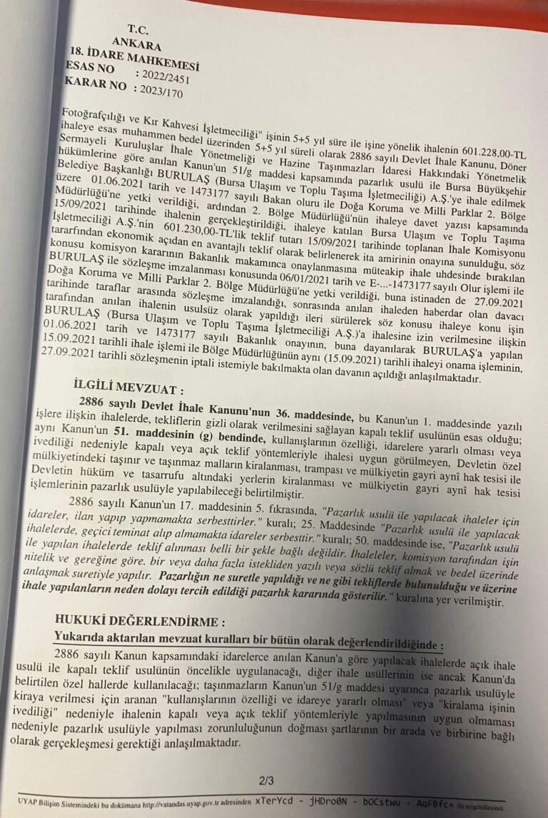 Öte yandan Bursa’da belediyenin yan kuruluşu BURULAŞ üzerinden verdiği bu “Ballı kaymaklı” ihale de yargıya taşındı ve Bursa Büyükşehir Belediyesi ve Gülşah Alkoçlar ilk davayı kaybetti.