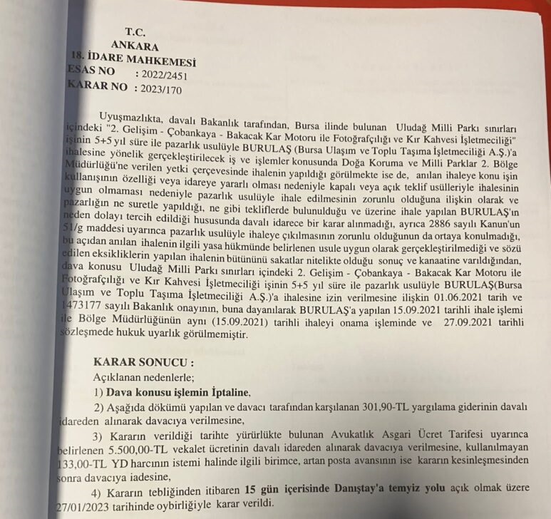 Bursa’da geçtiğimiz aylarda Bursa Büyükşehir Belediyesi ihale ile Uludağ’daki çeşitli ticari