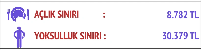 Bu harcamanın sadece gıda için gerekli minimum tutar olduğu belirtilen raporda, açlık sınırı üzerinden hane halkı tüketim harcamaları esas alınarak yapılan hesaplamaya göre yoksulluk sınırının 30 bin 379 lira olduğu saptaması yapıldı.