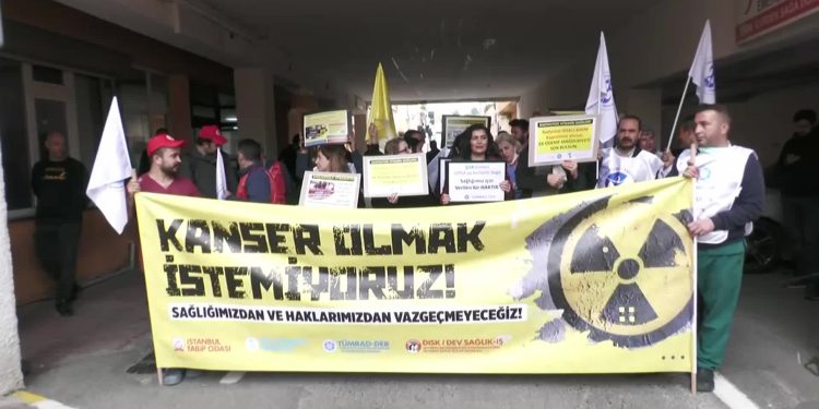 İstanbul’da sağlık meslek örgütleri ve sendikaları, '8 Kasım Dünya Radyoloji Günü' nedeniyle bugün Cerrahpaşa Tıp Fakültesi önünde “Kanser olmak ...