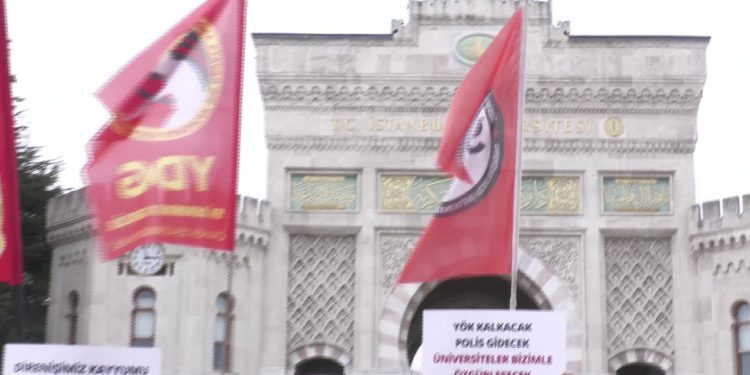 İstanbul Üniversitesi ana giriş kapısı önünde bir araya gelen öğrenciler, Yükseköğretim Kurulu’nu (YÖK) kuruluşunun 41’inci yıl dönümünde ...