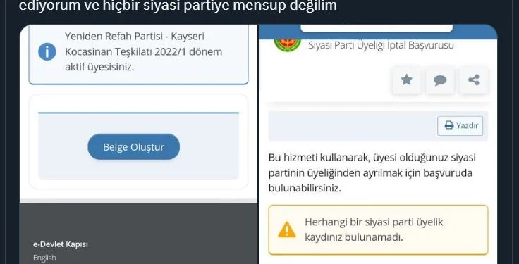 Yeniden Refah Partisi Genel Başkanı Fatih Erbakan'ın karar değiştirerek ittifaka katılmasını protesto eden Yeniden Refah Partisi üyeleri, E-Devlet'ten verdikleri istifalarının...