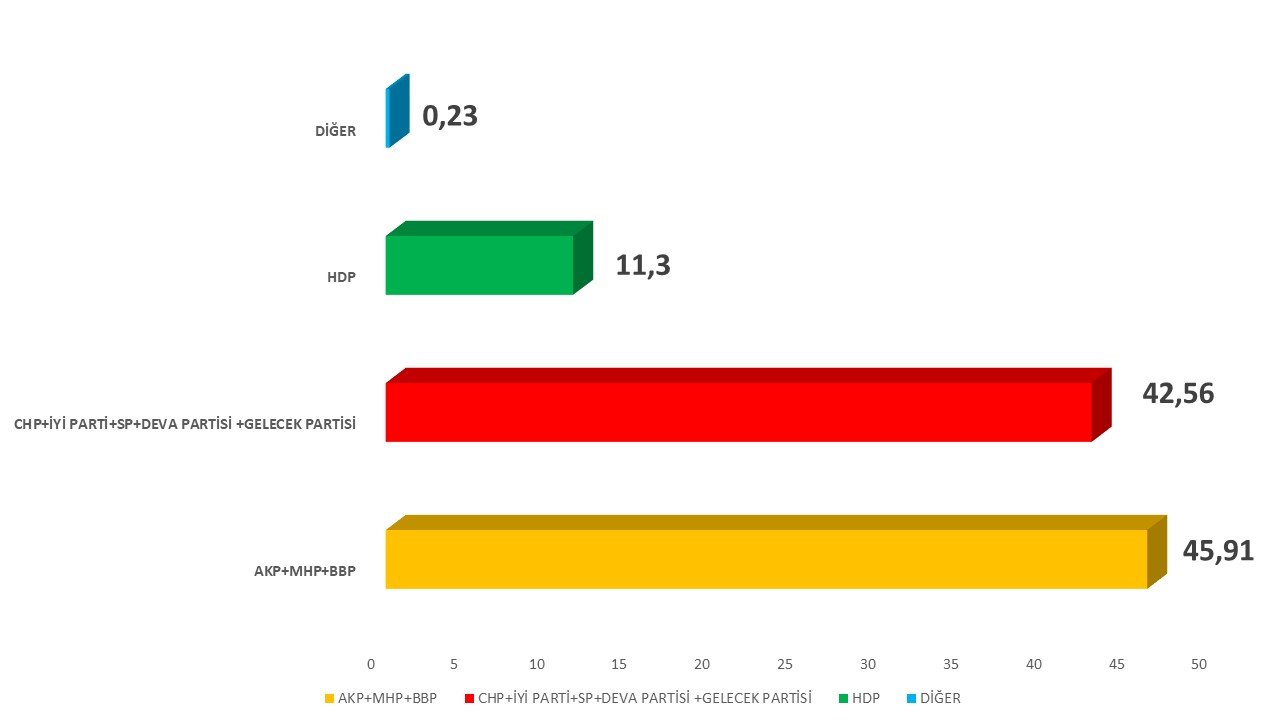 - AKP+MHP+BBP ittifakının oy oranı yüzde 44,9 olarak gözüküyor.
