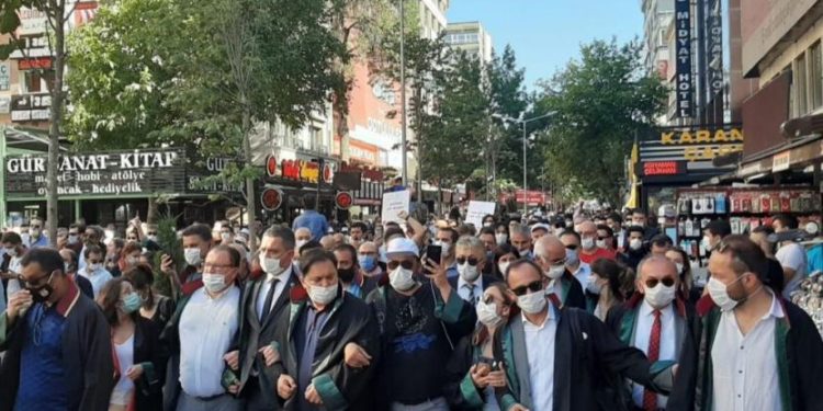 Meclis’e alınmayan avukatlar baro başkanlarıyla birlikte Sıhhiye Adliyesi’ne doğru yürüyüşe geçti.