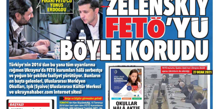 Haberde, “Türkiye’nin 2016’dan bu yana tüm uyarılarına rağmen Ukrayna’da FETÖ kurumları hâlâ serbestçe ve yoğun bir şekilde faaliyet yürütüyor. Bunların en başta gelenleri, Uluslararası Meridyen Okulları, Işık (Syaivo) Uluslararası Kültür Merkezi ve ukraynahaber.com internet sitesi yer alıyor. Zelenskiy’nin, FETÖ’nün kapatılan Cihan Haber Ajansı’nın Ukrayna muhabiri Yunus Erdoğdu ile 2019’da soru-cevap etkinliğinde fotoğrafı ortaya çıktı.” denildi.