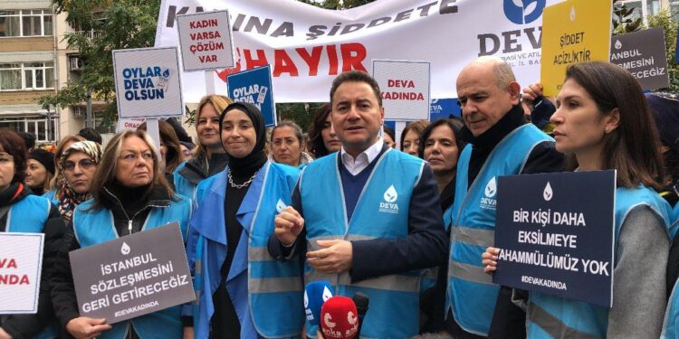 DEVA Partisi Genel Başkanı Ali Babacan, 25 Kasım Kadına Yönelik Şiddete Karşı Mücadele Günü kapsamında partisi tarafından Kadıköy’de düzenlenen yürüyüşe katıldı. Yürüyüş sırasında “Deva’da kadın yaşayacak”, “Demokrasi, atılım derhal bugün”, “Deva şiddete çözüm olacak” sloganları atıldı.