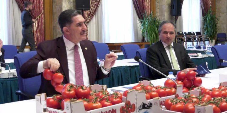 AKP Ağrı Milletvekili Ekrem Çelebi, Ağrı’daki seralarda yetiştirilen domatesleri kasalarla komisyona getirdi. CHP İstanbul Milletvekili Mehmet Bekaroğlu, Çelebi’ye, “Millet alamıyor, siz alıyorsunuz. Göstermeye mi getirdiniz” diye sordu. CHP Muğla Milletvekili Süleyman Girgin ise “Muhalefete hazırlanıyorlar” dedi. AKP’li Çelebi de “Rüyanızda görürsünüz” diye yanıt verdi ve vekiller arasında gülüşme yaşandı.