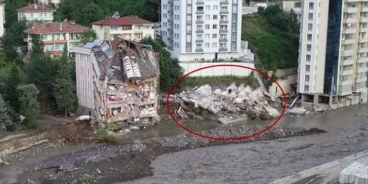 Bina ana köprüden 100 metre aşağıda. Köprüde sel birden 15-25 metre yığınak yaptı. Hatta köprünün ucunu kopardı. Sel binanın olduğu istikamate hızlı şekilde gitti. DSİ’nin tahkimatı yıktı. Binanın altını oydu. Diyeceksiniz ki, yanı başında yine aynı müteaahitin yaptığı bir bina daha var. Oranın yapısı biraz kayalıkmış.