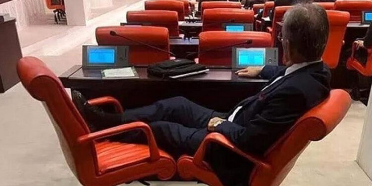 TBMM’de başlayan bütçe görüşmeleri tartışmalar ve kavgalarla devam ederken Meclis’ten dikkat çeken bir görüntü daha geldi. İYİ Parti İstanbul Milletvekili Ahat Andican’ın Ticaret Bakanlığı’nın bütçesinin görüşüldüğü sırada ayağını yanındaki koltuğa uzattığı görüldü. Söz konusu kareye sosyal medyadan tepki yağdı.