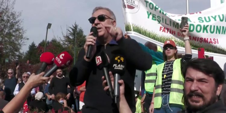 “Yeşil alanlar, gücü elinde bulunduranlar eliyle imar planları değiştirilerek, büyükşehir belediyeleri baypas edilerek, Çevre ve Şehircilik Bakanlığı’nın koridorlarında rüşvetle, yolsuzlukla planlar değiştirilmesi alışkanlık hâline gelirse yarın biz, Taksim’i de, Sultanahmet’i de, Ataköy’ü de kaybederiz. 65 yaşında emekli olmuş bir insanın sağlıklı bir çevrede yaşaması için verilen bir mücadeledir. Millet İttifakı, İstanbul’un yeşil alanlarını nasıl artıracağız diye mücadele ederken Saray ve Saray’ın adamları, yeşil alanlarımızı talan etmeye çalışıyorlar. Yürütmeyi durdurma kararı alındı. Bu ülkede yürütmeyi durdurma kararını 20 dakika geçtikten sonra ‘tanımıyorum’ diyen kaymakamlar ve valiler görüyoruz. Kararlarımızı hukuk devleti içerisinde yürütemeyeceksek o zaman bizim mülkiyet hakkımızın ve can güvenliğimizin teminatı nedir? Burada yapılan hukuksuzluklar karşısında polislerimizin gözlerinde akan yaşlar, Saray’ı ve onun adamlarını boğacaktır.”