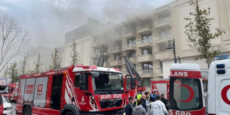 Balkonlardan duman yükseldiği yangına itfaiye ekipleri müdahale ediyor. Otelde konaklayanlar tahliye edilirken, caddeyi kaplayan yoğun duman Anadolu Yakası’ndan da görülüyor.