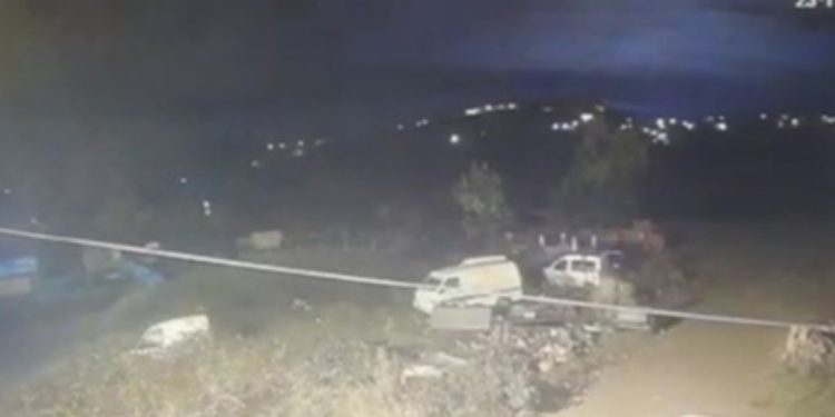Deprem sırasında ortaya çıkan ışık huzmesi güvenlik kameralarınca saniye saniye kaydedildi.