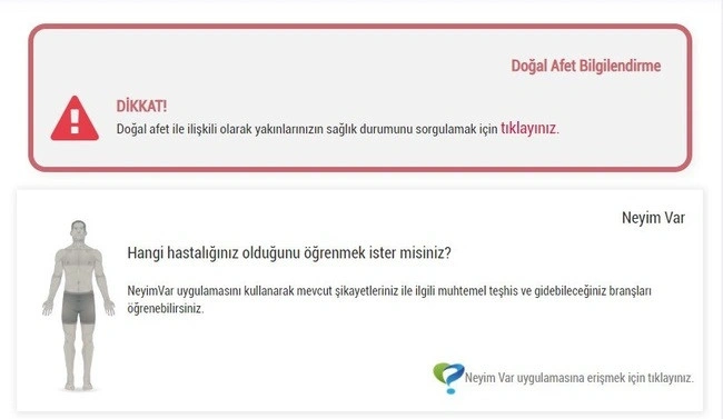 e-Nabız’da yer alan ve kullanıcıların aile bireylerinin sağlık durumuna ve bulunduğu hastane bilgilerine ulaşabilmesine imkan sağlayan Doğal Afet Bilgilendirme alanında toplanan bilgiler depremlerde kayıp kişilerin bilgilerine tek elden ulaşma imkanı sağlayacak.