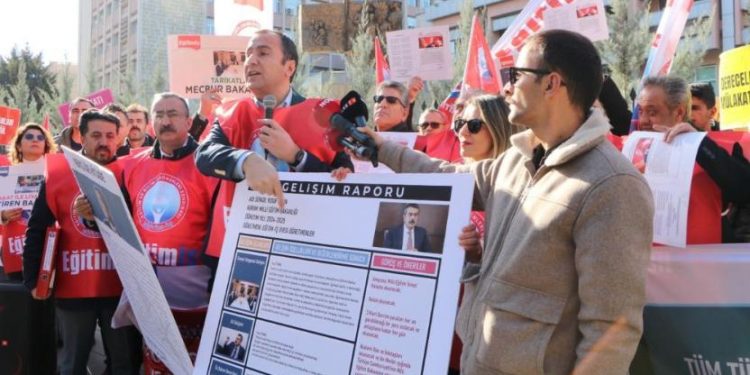 Eğitim-İş Sendikası, okulların yarıyıl tatiline girmesinin ardından bakanlık önünde Milli Eğitim Bakanı Yusuf Tekin için hazırlanan “gelişim raporu”nu açıkladı.