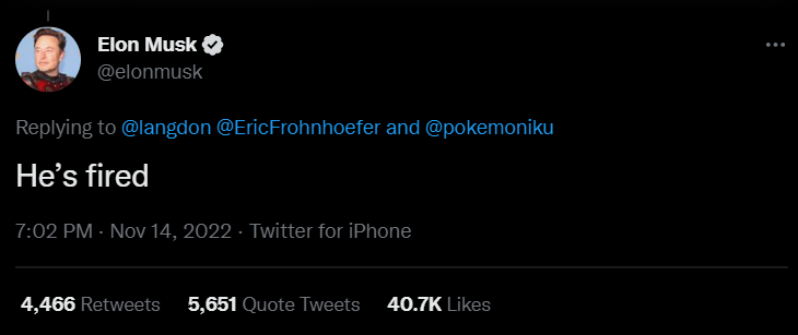 Başka bir kullanıcı da Musk’ı etiketleyerek “Bu tür bir tavırla, muhtemelen bu adamı ekibinizde istemiyorsunuz” diye yazdı. Musk da “Kovuldu” diye yanıt verdi.