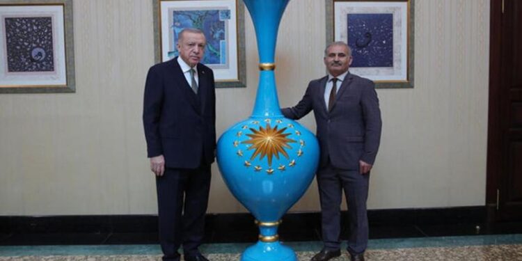 Cumhurbaşkanı Tayyip Erdoğan, çömlek sanatçısı Ahmet Taşhomcu’nun kendisine hediye ettiği 2,5 metrelik turkuaz vazodan 50 adet sipariş verdi. Erdoğan’ın, dev vazoları yabancı liderlere hediye edeceği belirtildi.