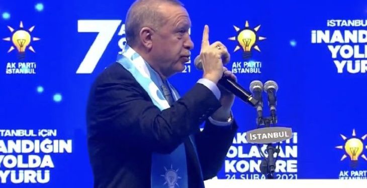 Erdoğan partisinin pandemi döneminde sağlık koşulları hiçe sayılarak binlerce kişi ile yapılan il kongresinde “Onlar Yeni Zelanda’daki katilin ağzından Ayasofya’yı minarelerden kurtaracağız dediler. Biz cevabımızı Ayasofya’yı 86 yıl sonra tekrar ibadete açarak verdik. Onlar mesajlarını bu aziz şehrin duvarlarına zulüm 1453’te başladı yazarak verdiler. Biz cevabımızı büyük ve güçlü Türkiye diyerek verdik. Onlar Boğaziçi Köprüsü’nde başlattıkları darbeyle istiklalimize el uzattılar, biz cevabımızı şehadete yürüyerek verdik.” şeklinde konuştu…