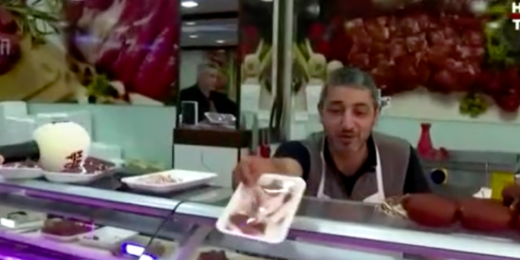 Muhabir çocuğu ‘tebrik’ ederken, kasap ise “Karne hediyesi kasap abisinden 3 kalem pirzola” diyerek eti çocuğa uzatmıştı.