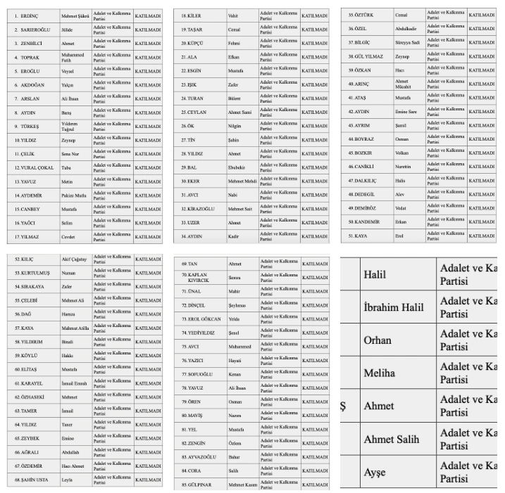 Katılmayan AKP’lilerin listesiyse şöyle;