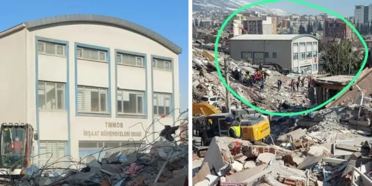 İnşaat Mühendisleri Odası (İMO) Kahramanmaraş Şubesi’ne ait binanın, çevresindeki neredeyse bütün binalar yıkılmasına rağmen hasarsız kalması, depremin ilk gününden bu yana konuşuluyor.