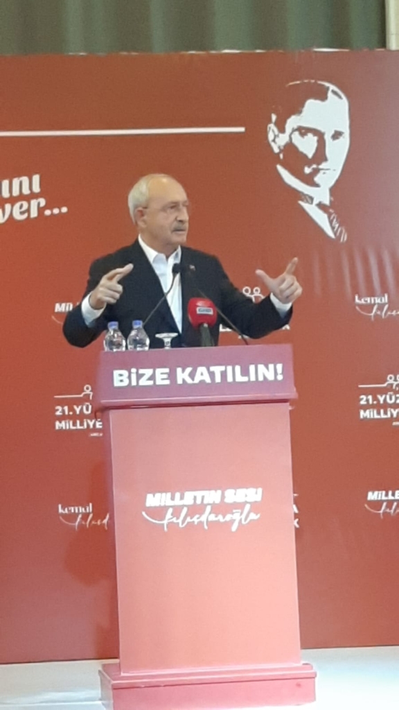 Ara ara sözleri “Bozkurt Kemal” sloganıyla kesilen Kılıçdaroğlu, “Ülkücülük mü diyorsunuz ben de ülkücüyüm kardeşim, milliyetçilik mi diyorsunuz, ben de milliyetçiyim. Cumhuriyet Halk Partisi’nin iki kırmızı çizgisi vardır; vatan ve bayrak. Vatanı ve bayrağıyla sorunu olmayan herkesin başımızın üstünde yeri vardır.” şeklinde konuştu.