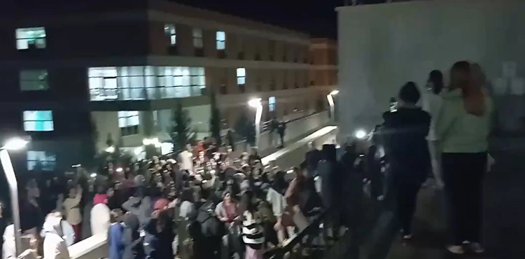 Daha öncesinde de benzer sorunları yaşayan öğrenciler, saat 00.30 sıralarında bir araya geldi. Kalabalığı dağıtmaya çalışan güvenlik, öğrencilerin ismini alarak tehdit etti. Öğrenciler, güvenliğin engelleme girişimine karşın sloganlarla İdare Binası’na yürüyüş gerçekleştirdi.