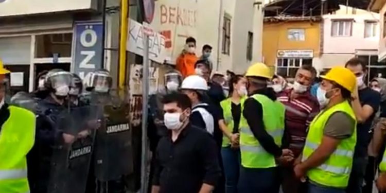İşçiler Güneyyurt Meydanı’nda yürüyüşlerini devam ettirmek için harekete geçti. İşçilerin önü kısa bir süre sonra yüzlerce jandarma tarafından “Pandemi” gerekçesiyle kesildi. Jandarmaya seslenen işçiler, “Madenlerde kaçak çalışanlar var, bizi engelleyeceğinize onları çalıştıranları engelleyin. Biz ölmek var dönmek yok dedik, son derece ciddiydik” dedi.