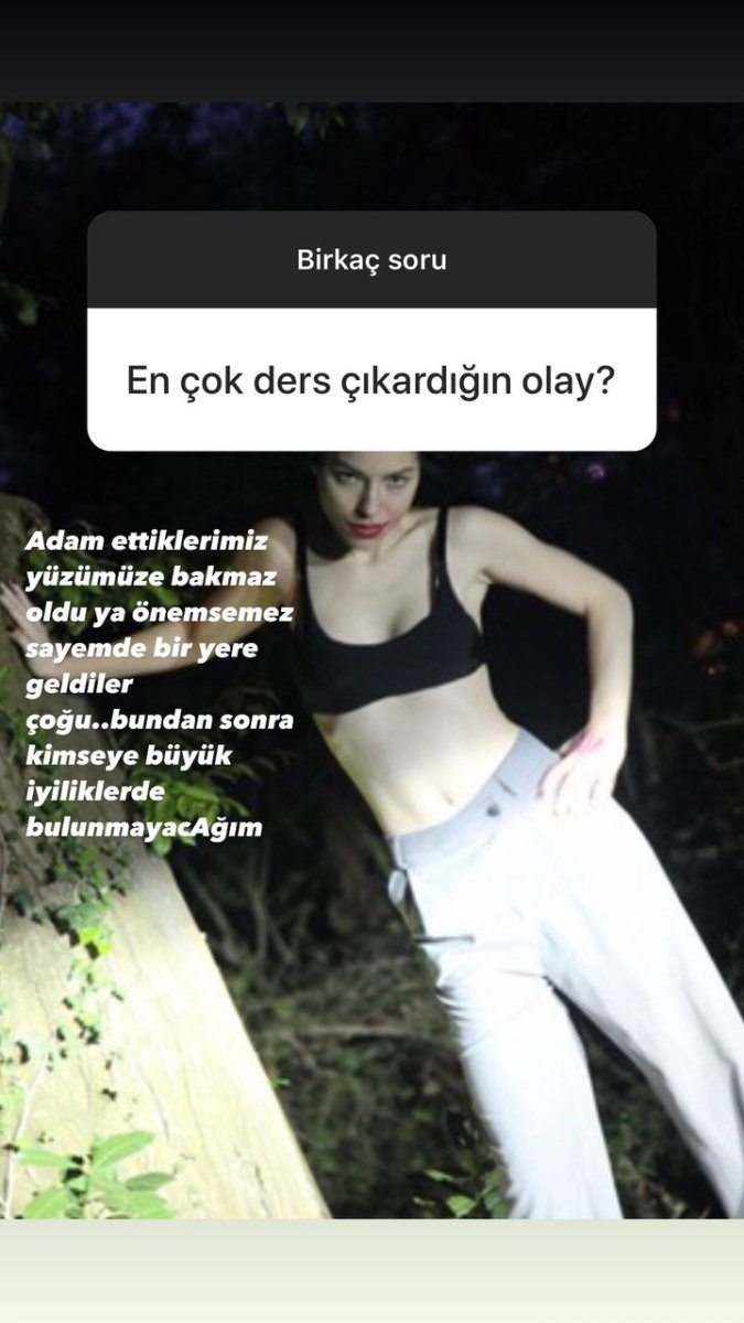 Evliliğinde sorunlar yaşadığı iddia edilen ünlü ismin, Instagram’da bir takipçisinden gelen “Ders çıkardığın olay ne?” sorusuna verdiği cevap da dikkat çekti. Oyuncu paylaşımında dert yanarak “Adam ettiklerimiz yüzümüze bakmaz oldu ya önemsemez sayemde bir yere geldiler. Bundan sonra kimseye büyük iyilikte bulunmayacağım” dedi.