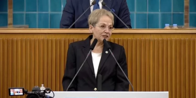 İYİ Parti’nin haftalık grup toplantısında sürpriz bir isim yer aldı. Eski Devlet Bakanı Melda Bayer, İYİ Parti saflarına katıldı. Bayer’e rozetini İYİ Parti Genel Başkanı Meral Akşener taktı.