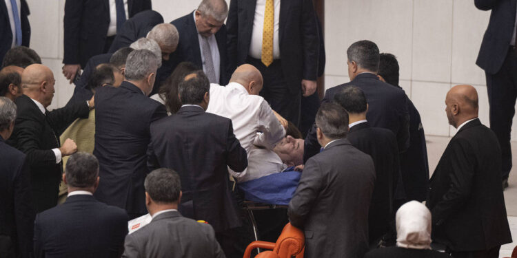 İlk müdahaleyi İYİ Parti Balıkesir Milletvekili Turhan Çömez yaptı. Sağlık ekipleri Genel Kurul salonuna çağrıldı.