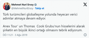 İFLAS EDEN THOMAS COOK VE ÖĞER’İN HİSSELERİNİN SATIN ALINMASI İÇİN BAKAN ERSOY’DAN DESTEK SÖZÜ ALAN PATRON