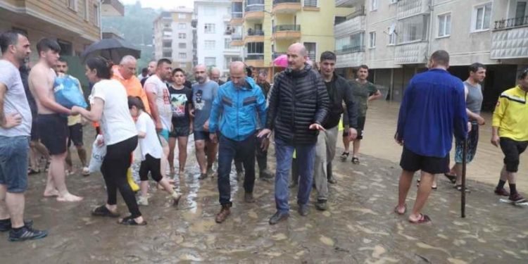 İçişleri Bakanı Süleyman Soylu da Arhavi’de incelemelerde bulundu.
