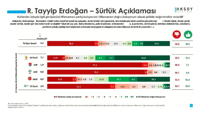 Sosyal Demokrasi Vakfı Başkanı (SODEV) ve AKSOY Araştırma Şirketi’nin kurucusu Ertan Aksoy, AKP’li Cumhurbaşkanı Recep Tayyip Erdoğan’ın Gezi eylemcilerine yönelik kullandığı “sürtük” ifadesine toplumun yüzde 39’unun “doğru” bulduğunu ortaya koyan anket sonucuna dikkati çekti.