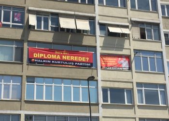 HKP İL BİNALARINA “DİPLOMA NEREDE?” PANKARTI ASTI