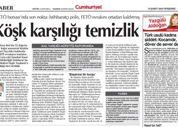 Cumhuriyet Gazetesi'nden Seyhan Avşar'ın yaptığı ve Metin Göktepe Gazetecilik Ödülleri'nde ödül kazanan "KÖŞK KARŞILIĞI TEMİZLİK" başlıklı habere ve haberin kazandığı ...