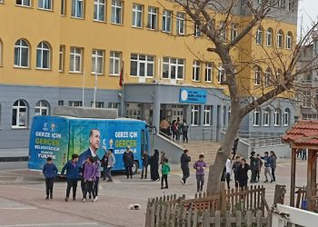 AKP PROPAGANDA YAPMAK İÇİN SEÇİM OTOBÜSÜ İLE OKUL BAHÇESİNE KADAR GİRDİ