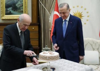 Erdoğan ile Bahçeli; Üç hilalli doğum günü pastası kestiler