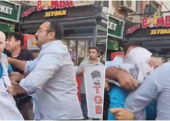 Türkiye Gençlik Birliği (TGB) üyeleri, ABD’nin en büyük taarruz gemisi görevini gören USS Wasp’ta görevli Amerikan askerine çuval ...