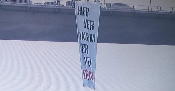 Gezi olaylarının 9. yıl dönümünde TİP’li milletvekilleri, Boğaziçi Köprüsü’ne Gezi pankartı astı. Gezi olaylarının 9. yıl dönümünde TİP’li milletvekilleri, Boğaziçi Köprüsü’ne Gezi pankartı astı.