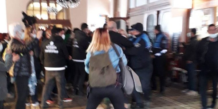Mahkeme kararına rağmen polis tahliyeyi gerçekleştirmek isteyen zabıta ekiplerine engel oldu. Polisle zabıta ekipleri arasında küçük çaplı arbede yaşandı.