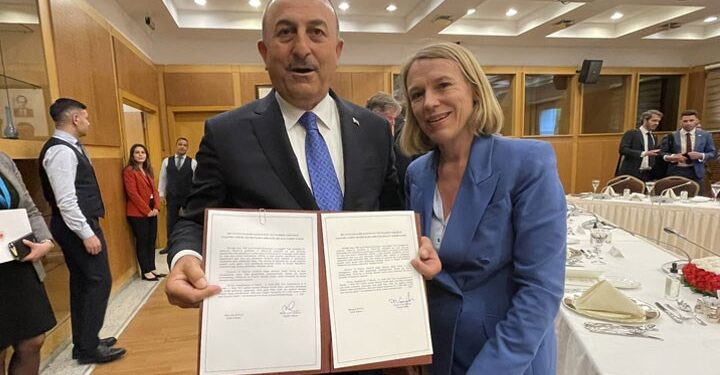 Türkiye ile imzalanan anlaşmayı sosyal medya hesabı Twitter’dan duyuran Norveç Dışişleri Bakanı Anniken Huitfeldt, Dışişleri Bakanı Mevlüt Çavuşoğlu’yla anlaşmayı tutarken çekilmiş fotoğrafını da paylaştı.