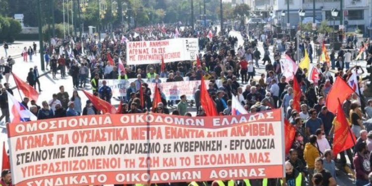 Yunanistan’da Tüm İşçilerin Militan Cephesi (PAME) öncülüğünde on binlerce işçi, toplu iş sözleşmesi ve ücret artışı talebiyle bugün 24 saatlik genel grev yapıyor.